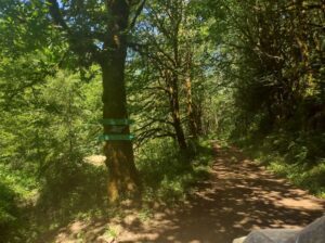 You’ll go up and hill and down a hill, and will see a field on your LEFT as you come down the hill. You’ll see some signs on the tree (pictured below) but it is REALLY hard to see/make out where it is pointing to, but basically it is saying the main stage is that left that you DON’T want to take.