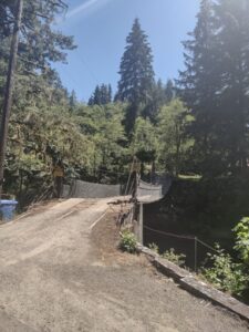 Maps will tell you to then turn onto Wooden Bridge Rd. It’ll look like this as you are approaching it, and it’s indeed a wooden bridge, but yes it is safe for our trucks, vans and cars:
